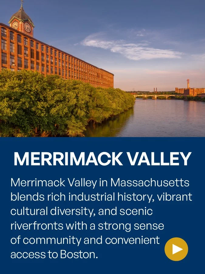 Merrimack Valley blends a rich industrial history with ongoing growth, featuring vibrant cultural diversity, redeveloped downtowns, and scenic riverfronts.